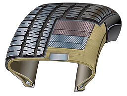 자동차 타이어는 트레드(thread: 노면에 닿는 접지면)와 타이어 골격부로 구성됩니다. 자동차 타이어를 제조할 때는 오일, 강철, 황 화합물, Kevlar®, 폴리에스테르 및 최대 80가지 등급의 고무, 아라미드, 아연, 수지, 실리카 등 200가지 이상의 다양한 재료가 사용됩니다.