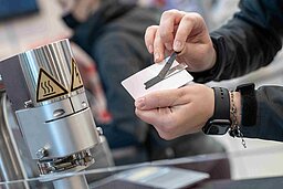 고에너지 플라즈마는 재료와 접촉하면 표면 특성을 변화시켜 제조 공정의 효율성과 정밀도를 향상시킵니다. 이 기술은 비극성 플라스틱을 접합하거나 플라스틱과 금속 또는 플라스틱과 유리를 결합할 때 특히 유용합니다. 이 기술은 생산을 더욱 비용 효율적이고 환경 친화적으로 만듭니다. 또한 자동차 산업에서 특히 중요한 높은 접합 품질을 일관되게 보장합니다. 파쿠마를 방문한 무역 방문객들은 플라스마트레트 표면 처리 공정과 글라우브 테이프 적용의 조합을 직접 체험할 수 있었습니다: 플라스틱 테스트 시편을 먼저 오픈에어 플라즈마로 전처리한 다음 글라우브의 데모 시스템에서 자동으로 테이핑했습니다. 현장 테스트를 통해 플라즈마 효과의 효과를 확인할 수 있었습니다.