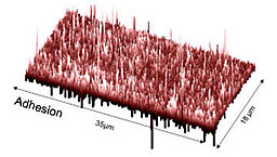 Openair-Plasma®를 사용하여 알루미늄과 같은 금속에서 휘발성 성분 증발 및 이산화탄소와 물의 산화 작용을 통해 압연유와 같은 원치 않는 탄화수소를 완전히 제거할 수 있습니다. 알루미늄에 대한 Openair-Plasma® 처리의 세정 효율성 을 조사하기 위해 연구업체인 NanoCraft 는 화학력 현미경 측정이라는 매우 민감한 방법을 사용했습니다. 탐침 팁을 비극성 탄화수소 화합물을 사용하여 변형시키고 물을 이미징 매질(Imaging Medium)로 이용하여 측정을 수행했습니다. 이와 같은 방법을 수행함으로써, 탐침 팁과의 상호 작용을 통해 가장 작은 불순물까지도 검출 가능하게 합니다. 동시에, 재료의 표면 장력은 플라스마 활성화에 의해 선택적으로 증가될 수 있습니다. 친수성이 눈에 띄게 증가하고 주목 코팅 및 마감의 접착력이 크게 개선됩니다.